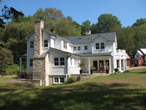 This major addition to an 18th Century stone farmhouse included 2000 SF of additional living space, as well as a group of outbuildings including a garage, potting shed and a guesthouse reconstructed with stone from an existing barn. ICF construction was utilized for both foundations and upper exterior walls of the main house .