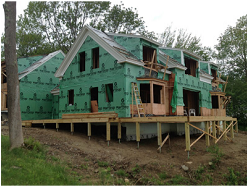 The owner of this waterfront lot with wonderful views of Harpswell Sound wanted a classic Greek Revival house to honor the longstanding architectural traditions of the area. The formal front of the house is a careful implementation of traditional New England Greek Revival details, while the water side opens up to the site and waterviews. In order to conform to budget contraints while still maintaining attention to historic detail, Connor Homes of Middlebury VT was engaged to complete the project using a modular component building approach.