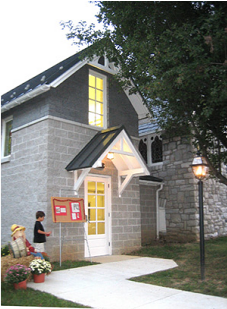 The clients considered many different solutions to the problem of making their church accessible to wheelchairs, before finally settling on an addition proposed by the architect. The result is a secondary entrance pavilion containing a new stair and lift which connect both the sanctuary and the lower level social hall directly to the street. In addition to solving the access problem, the project greatly improves circulation in the 100 year old church, to the benefit of the entire congregation. New construction is situated so as to preserve the traditional formal entrance to the church, and materials and details are utilized which compliment the historic stone exterior.